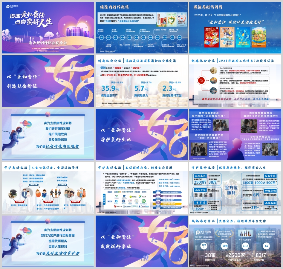 保险与时代同行,康养规划师作为新时代的保险从业者,以“爱和责任”为核心,通过专业规划与资源整合,为社会创造价值,为民众守护美好生活。在太保的雄厚平台支持下,他们不仅能够实现个人职业的辉煌,更能助力国家战略的落地,推动保险业在经济社会发展中发挥更大作用。未来,随着保险业的持续创新与发展,康养规划师这一职业必将迎来更广阔的前景和更崇高的社会认可。