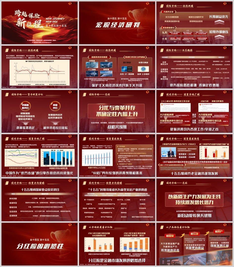 从十四五规划到十五五规划的跨越时期,我国乃至全球经济面临着诸多复杂的形势与挑战。在国际上,经济放缓、体系脆弱、货币政策分化等问题交织;在国内,消费市场广阔但消费需求转变,投资方向多元且具有前瞻性。在这样的宏观经济背景下,保险行业特别是分红险的发展呈现出独特的态势并具有必然性。
