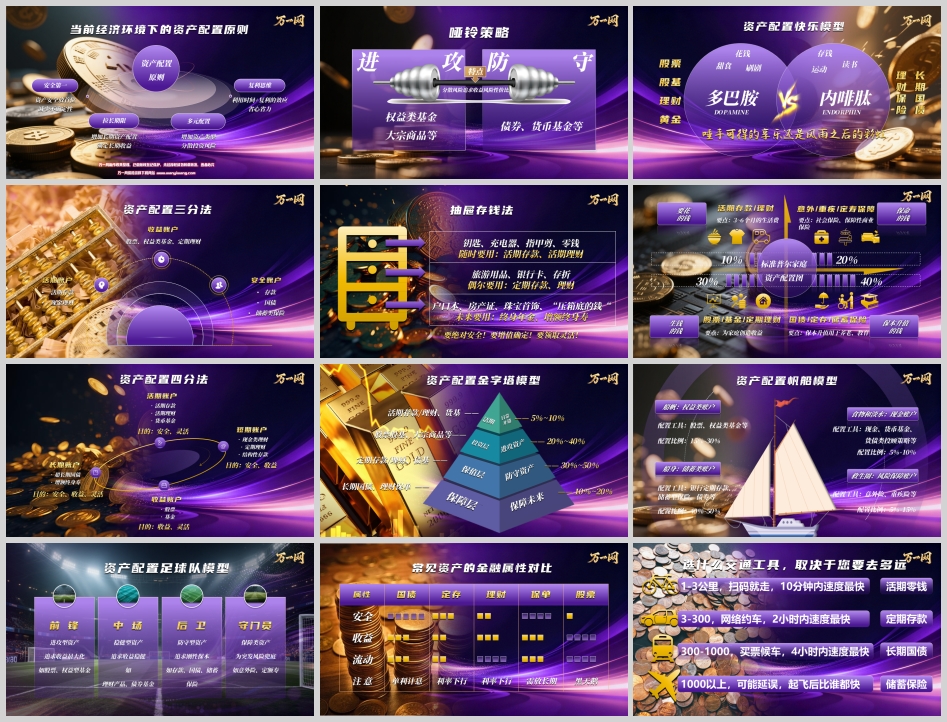 资产配置原则哑铃策略三分法四分法抽屉存钱法标准普尔金字塔帆船快乐足球队模型字体图片版12页.pptx